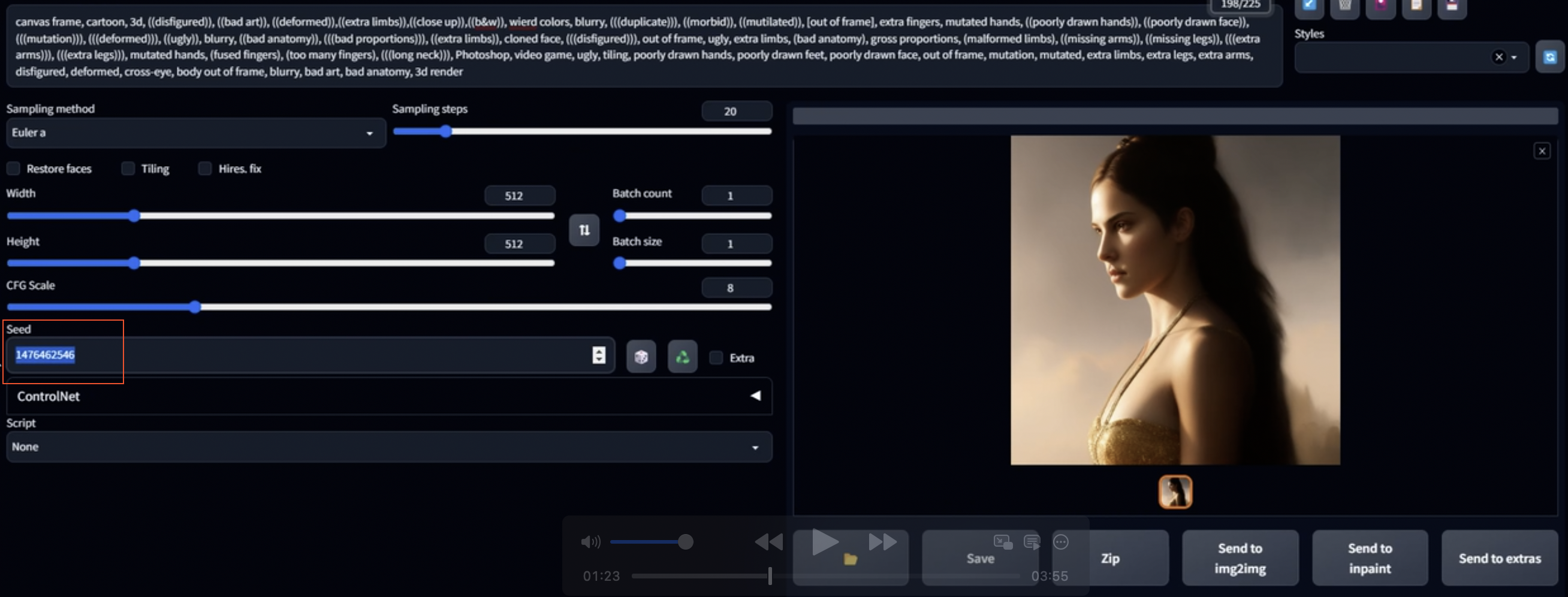 - 첫 번째 이미지의 시드 값을 Seed란에 입력