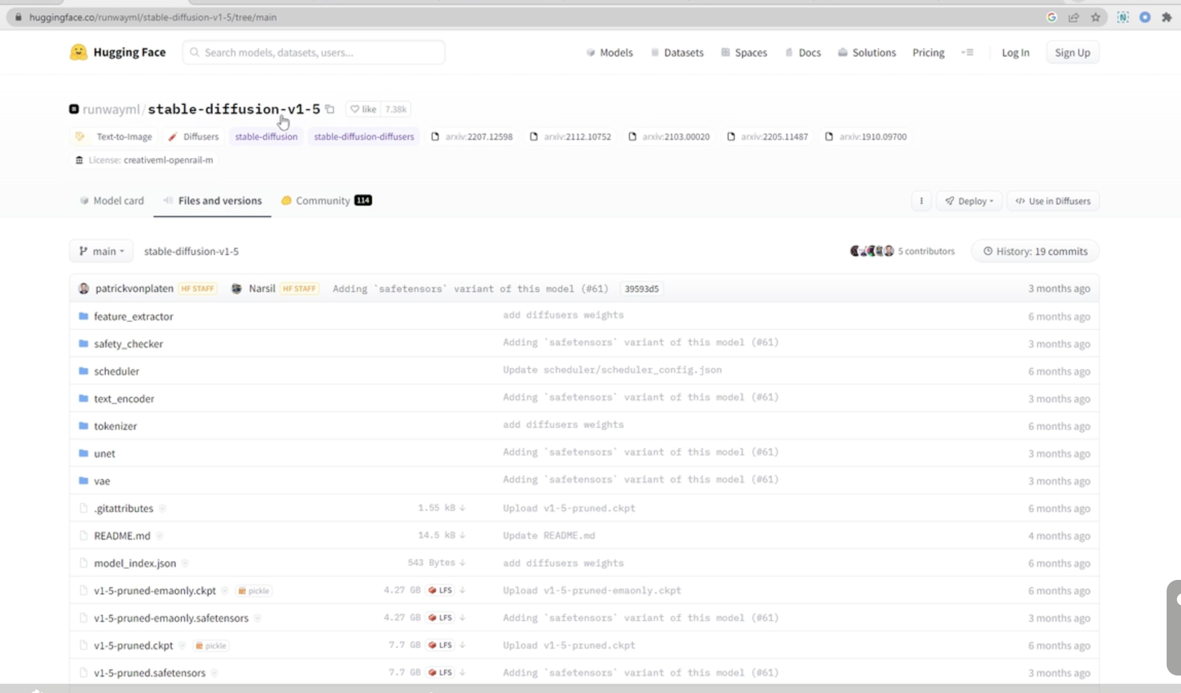 1. Hugging Face 웹사이트로 이동https://huggingface.co/runwayml/stable-diffusion-v1-5/tree/main