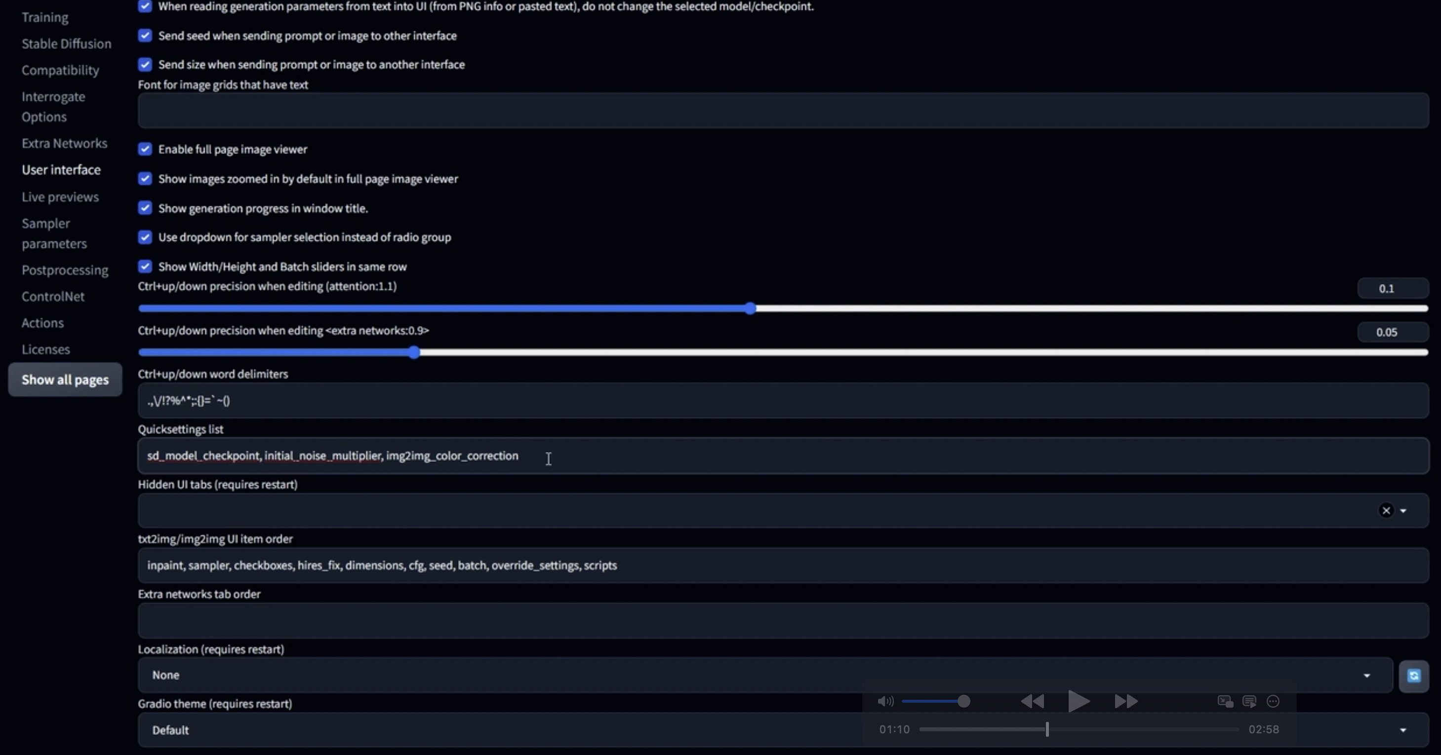 그리고 Stable Diffusion 항목에서는 다음 항목을 체크해야 합니다: