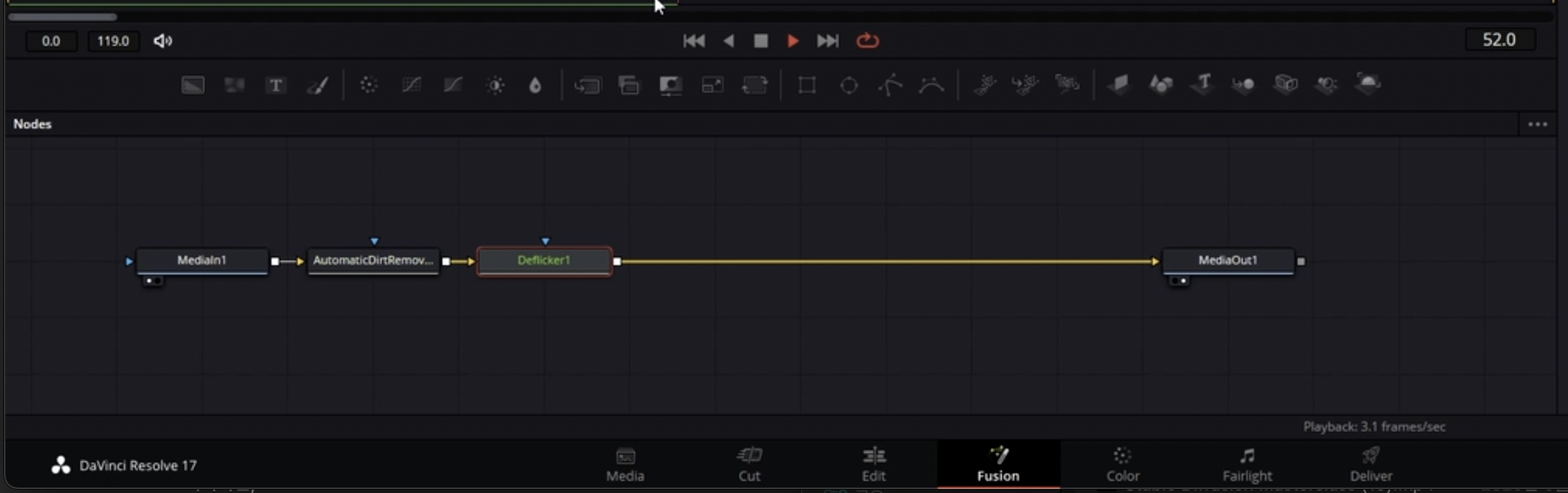 - DaVinci Resolve의 Automatic Dirt Removal + DeFlicker 효과로