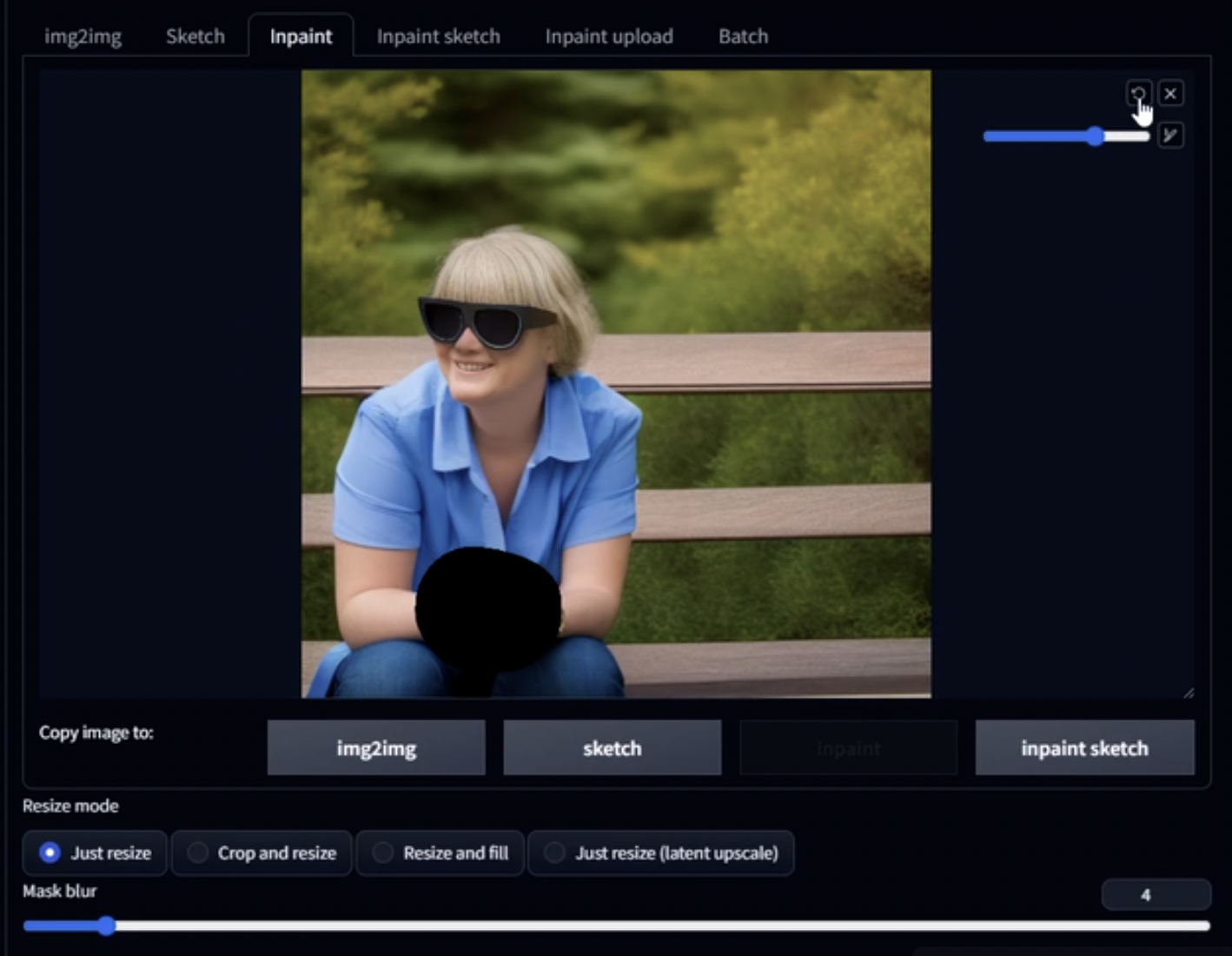 이는 이전 인페인팅 마스크가 여전히 적용되고 있기 때문입니다.