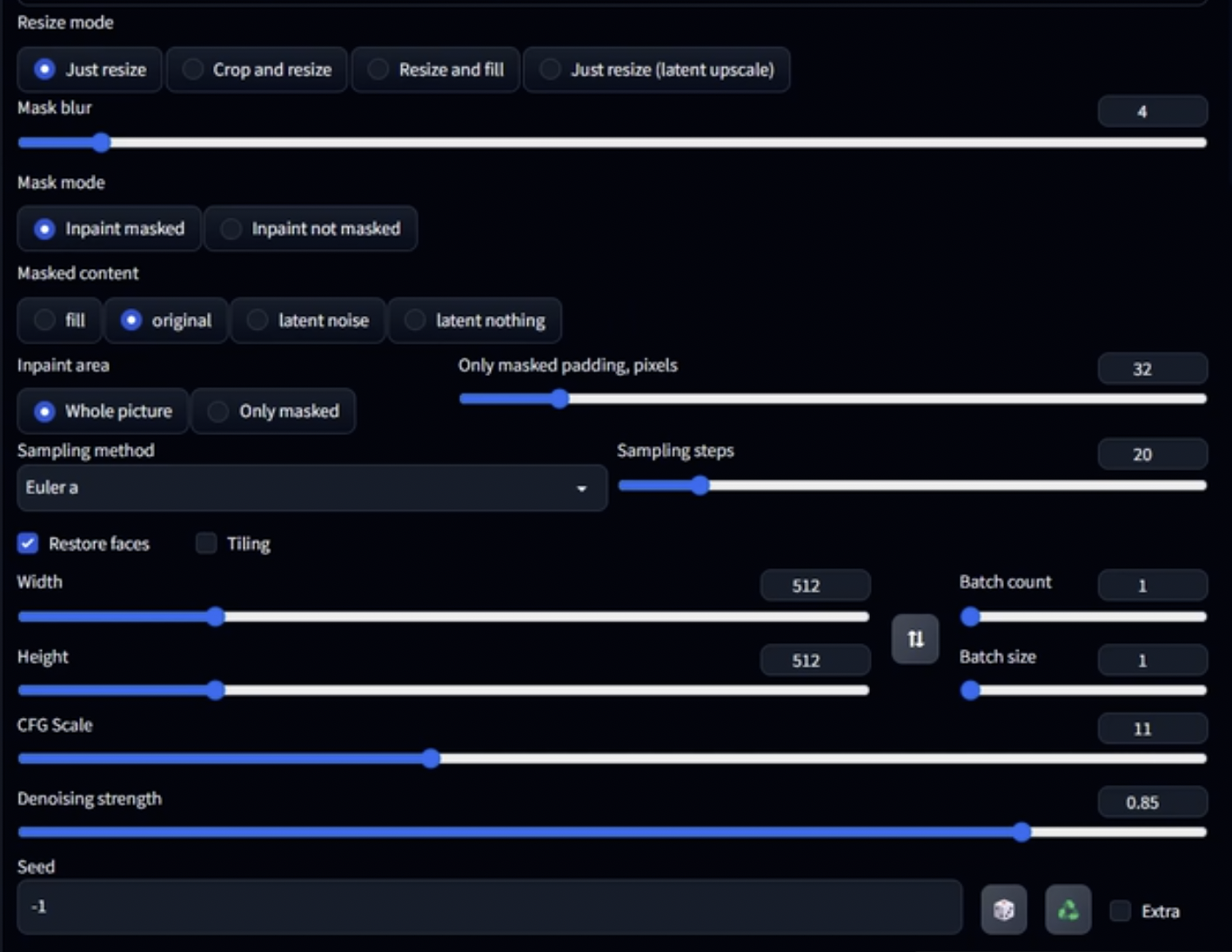 그리고 반드시 Inpaint masked 옵션이 선택되어 있어야 합니다.