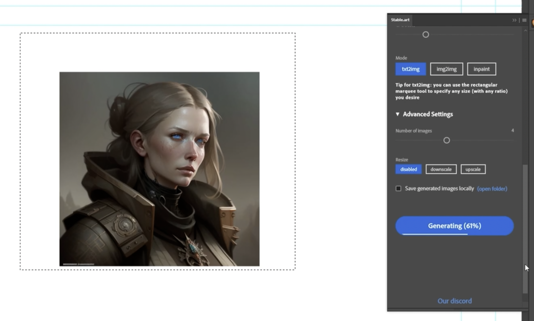 이제 Photoshop 안에서 Stable Diffusion 인터페이스를 그대로 사용할 수 있습니다.