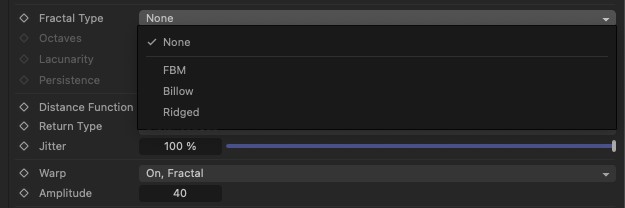 TerraFormFX에서 제공하는 프랙탈 타입은 FBM, Billow, Ridged로, 각각의 특성과 용도가 다릅니다. 아래는 각 프랙탈 타입에 대한 자세한 설명입니다: