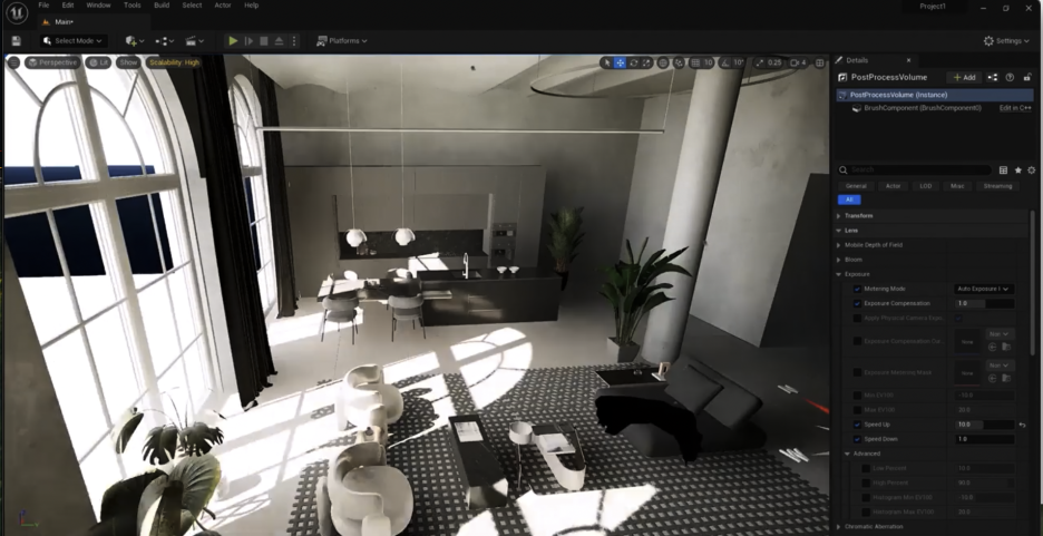 포스트 프로세스 볼륨은 씬(scene)의 노출(Exposure), 반사(Reflection), 색상(Color) 등 다양한 시각 효과를 제어하는 데 사용됩니다.
