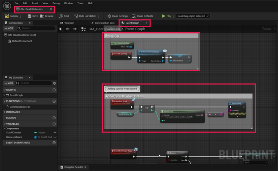- 내용에 해당 로직의 목적을 명확히 작성합니다. (예: "Add Scrolls when looted" 또는 "Initialize Game Instance Reference")
