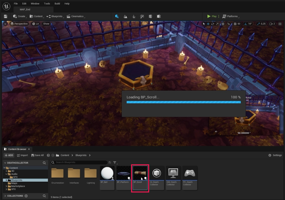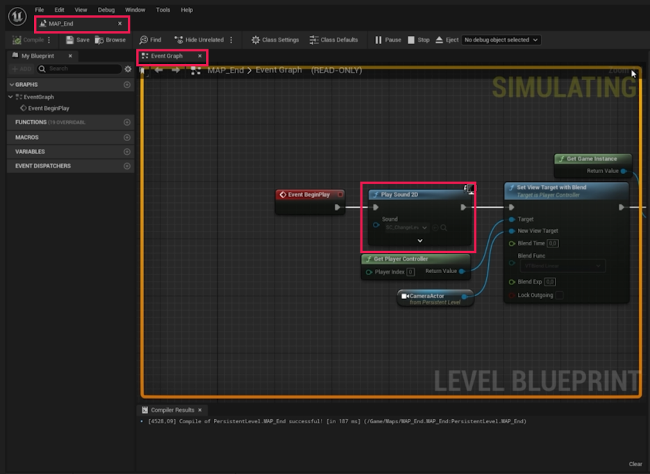 - Map_End 레벨 블루프린트를 엽니다.