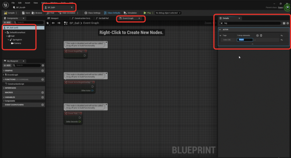 • BP_Ball에 Player라는 식별 태그가 부여됩니다.