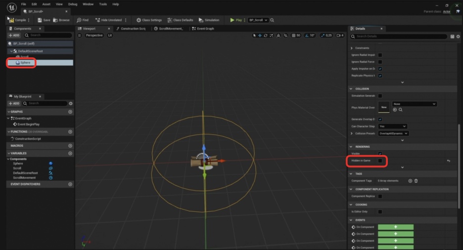 1. BP_Scroll에 충돌 영역 및 획득 로직 추가