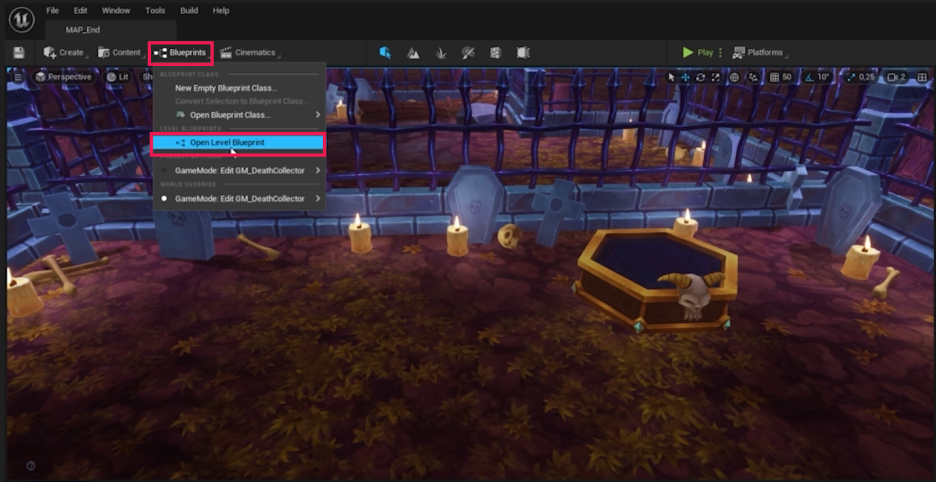 - Map_End 레벨 블루프린트를 엽니다.