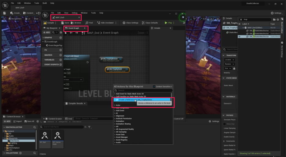 6. Map_End 레벨 블루프린트에서 트로피 표시