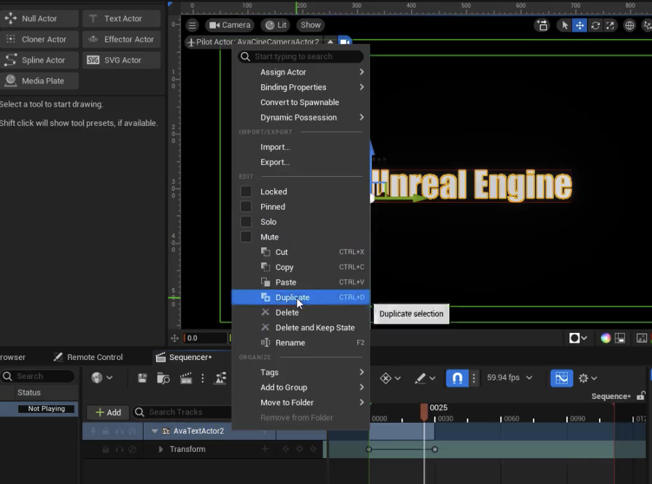 - '5.4'라는 텍스트를 만들기 위해 '언리얼 엔진' 텍스트를 복제합니다.