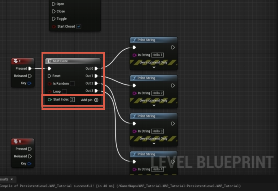 - Multi-Gate 노드는 마지막 실행 핀까지 코드를 모두 실행하면 멈춥니다.