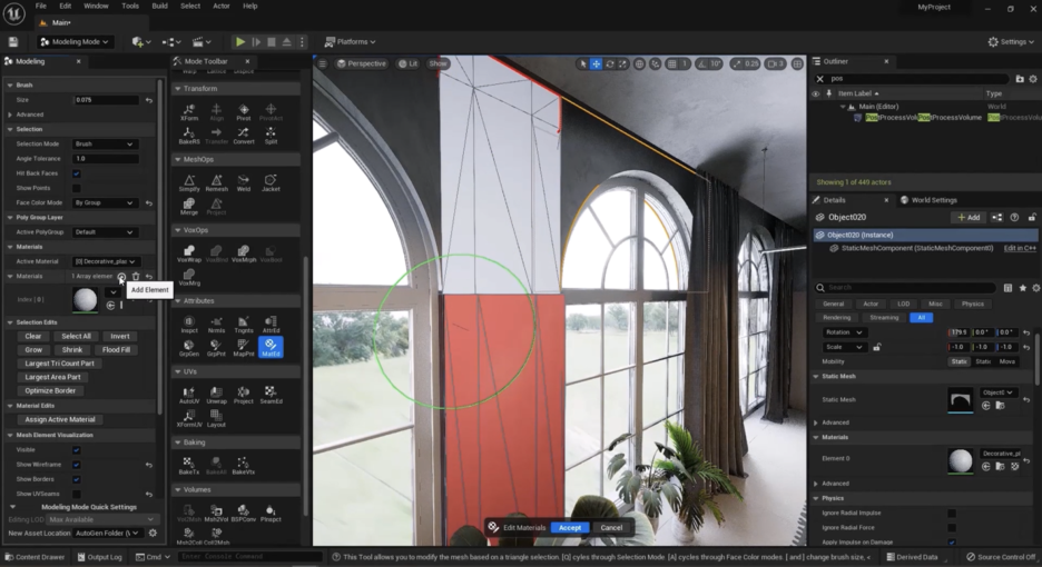- 모델링 툴 활성화: Unreal Engine에서 객체를 선택한 뒤, 모델링(Modeling) 모드로 전환합니다.