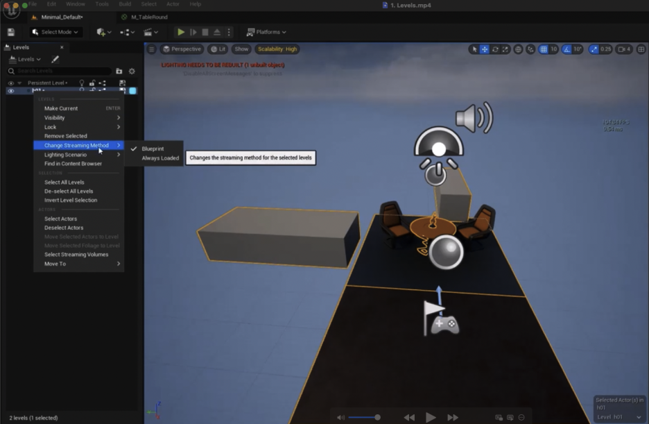 2. H01 레벨로 가서 Change Streaming MethodAlways Loaded로 변경합니다. 이 방법을 사용하면 두 개 이상의 레벨을 동시에 로드할 수 있습니다.
