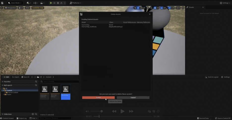 이제 기본 레벨인 Default Level로 돌아가서 Advanced Lighting Level로 가보겠습니다. Advanced Lighting Level입니다. 이제 Starter Map을 삭제하겠습니다. 삭제합니다. Advanced Lighting Map도 삭제하고 싶지만, 현재 그 안에 있으므로 먼저 Default Level로 돌아가야 합니다. 이제 Advanced Lighting Level도 삭제할 수 있습니다.