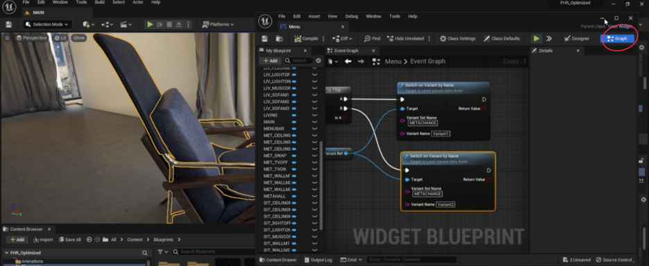 이번 글은 **모델 변경(Changing Models)**에 대해 이야기해 보겠습니다. 위젯 버튼을 클릭하여 씬에 있는 가구 모델을 서로 교체하는 방법을 배워보겠습니다.