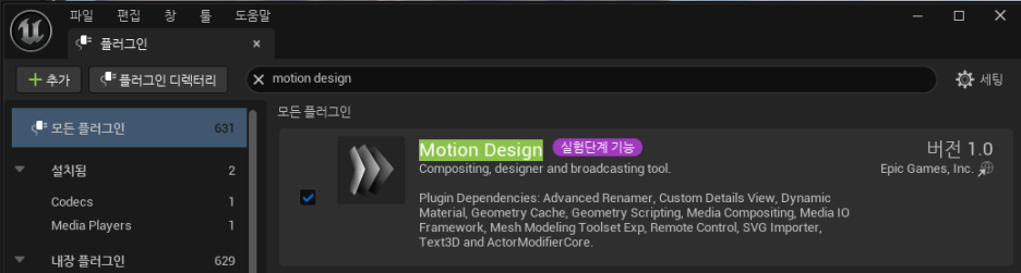 • Motion Design 플러그인을 찾아 활성화합니다.