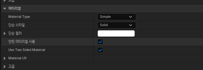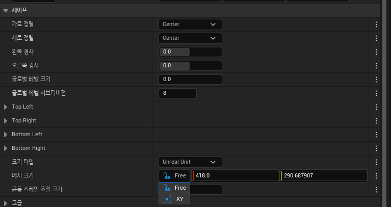 - Size Type: 셰이프의 크기를 언리얼 단위(Unreal Unit) 또는 픽셀(Pixel)로 설정할 수 있습니다.