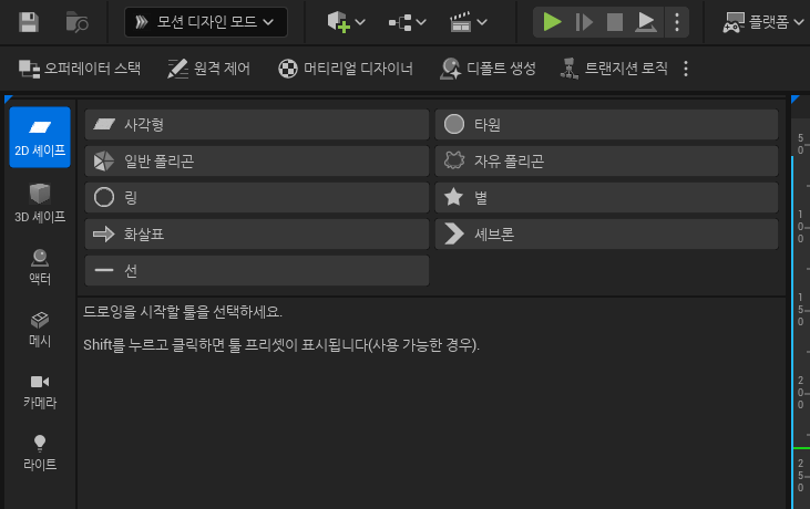 언리얼 엔진의 모션 디자인 플러그인에서 2D 셰이프를 만들고 그 속성을 조작하는 방법에 대해 자세히 설명합니다.