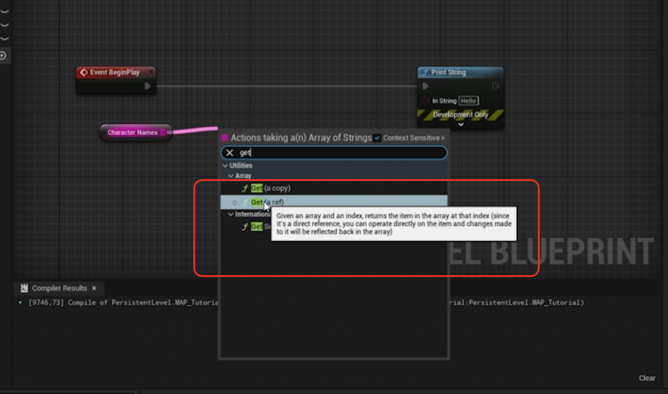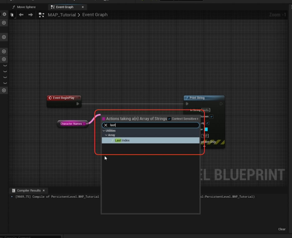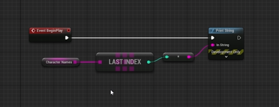 1. 핀 당기기: 생성한 'Character Names' 배열 변수의 핀을 그래프로 드래그합니다.