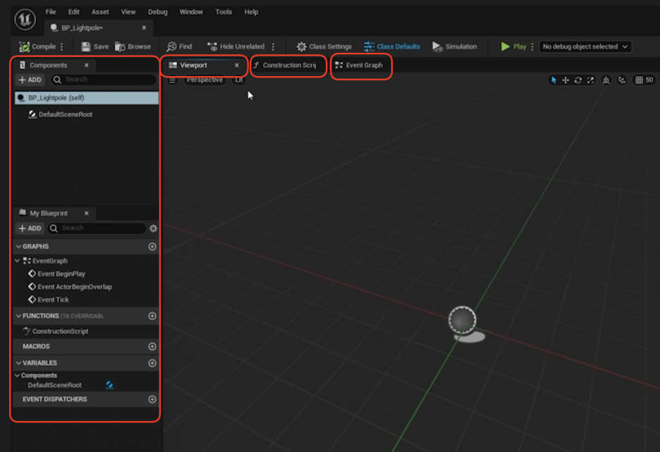 - 블루프린트 편집기 열기: BP_LightPole을 더블 클릭하여 엽니다.