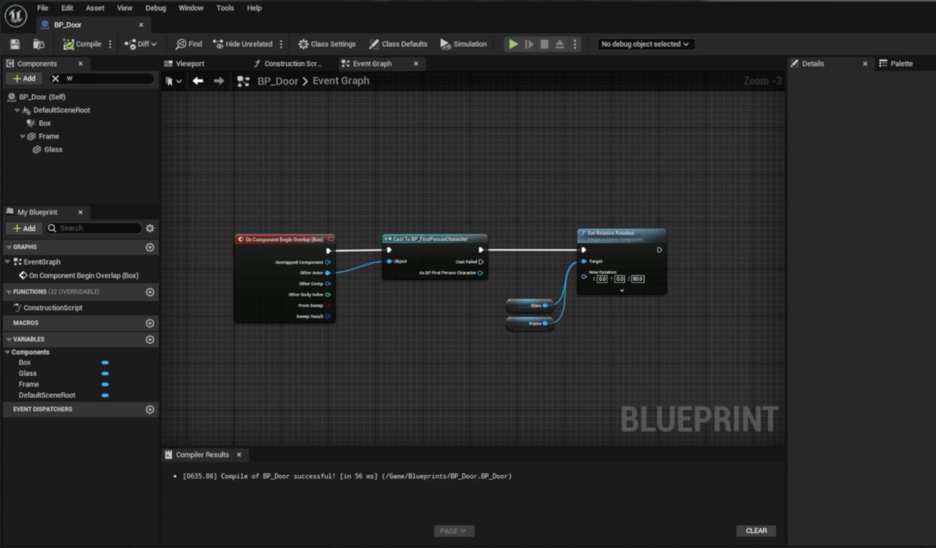 Unreal Engine 블루프린트(Blueprint)를 이용해 피봇(pivot) 도어를 만드는 방법을 단계별로 설명