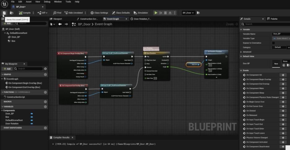 - 블루프린트 배치: BP_Door를 씬(scene)에 배치하고 테스트합니다.