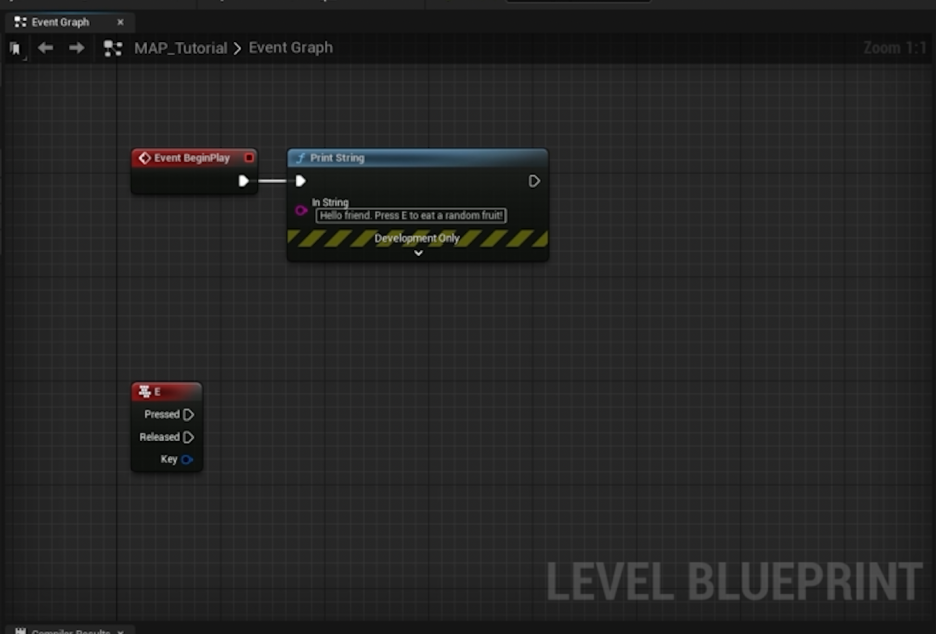 - Play를 누르면 "Welcome friend, please press E to eat a random fruit."라는 텍스트가 출력됩니다.