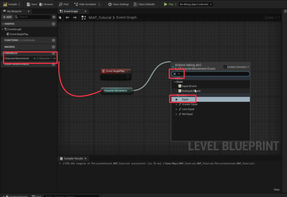 - 노드를 선택하면, 이제 열거형 변수와 비교할 다른 열거형 값을 선택할 수 있는 드롭다운 메뉴가 노드에 나타납니다.