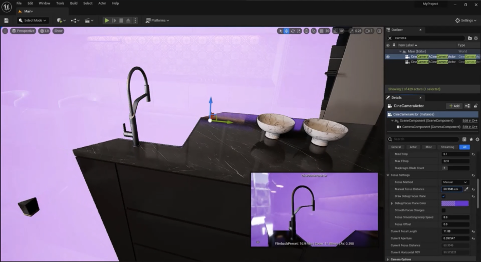 - Picker를 사용하여 추적할 오브젝트를 선택하면, 카메라 위치나 거리가 바뀌어도 해당 오브젝트는 항상 초점이 맞춰집니다.