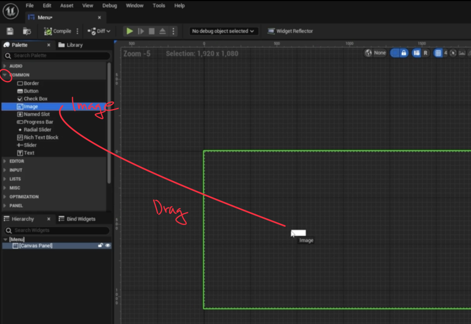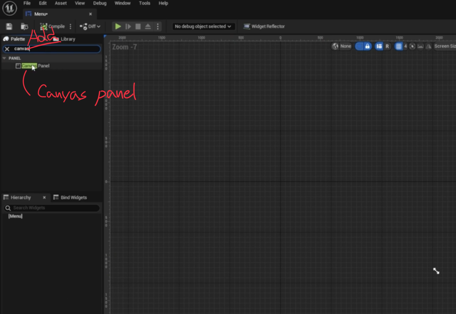 먼저 Canvas Panel 만들어 화면에 드래그해준다.