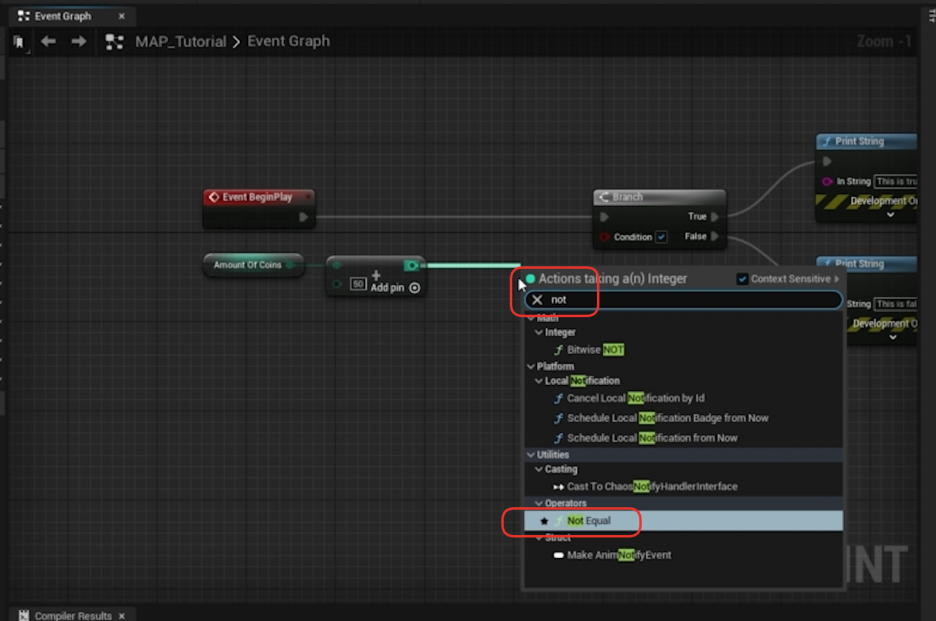 다른 조건 연산자도 사용해 봅시다. 이번에는 'Not Equal (같지 않음)' 연산자입니다.