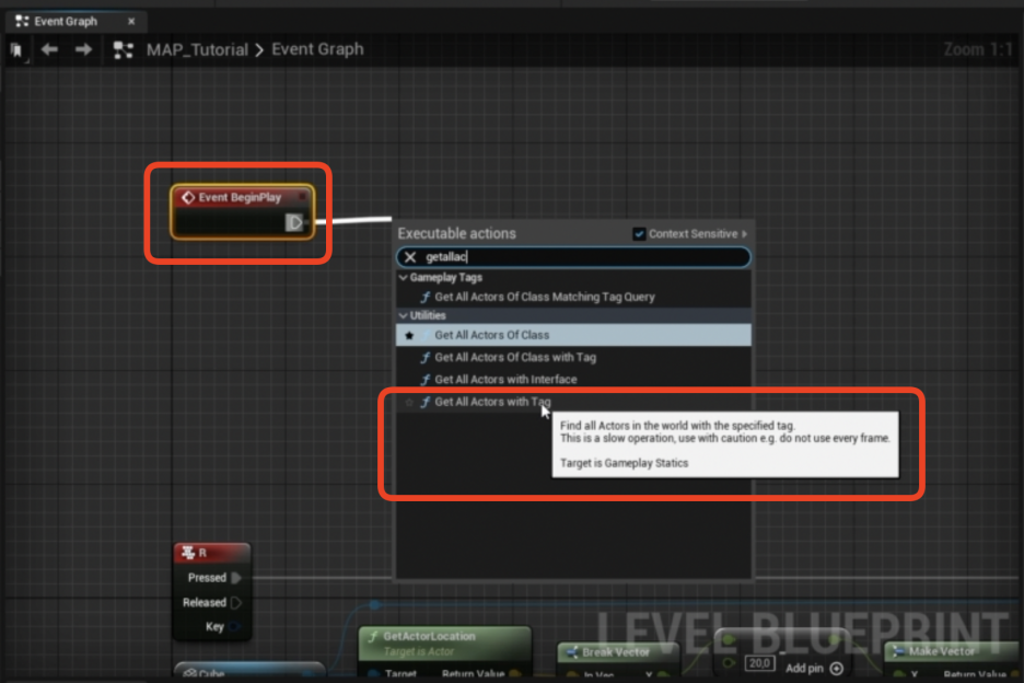 - 이와 유사하게 Get All Actors With Tag 노드를 사용할 수도 있습니다.