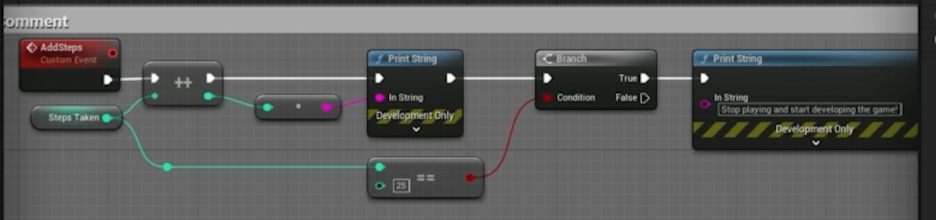 3. Then 1에 **'Steps Taken'**이 25와 같은지 확인하는 Branch 노드 로직을 연결합니다.