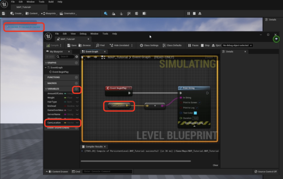 1. 변수 생성: 새 변수를 만들고 이름을 **'CamLocation' (카메라 위치)**이라고 하겠습니다. (나중에 더 적절한 이름으로 바꿀 것입니다.)