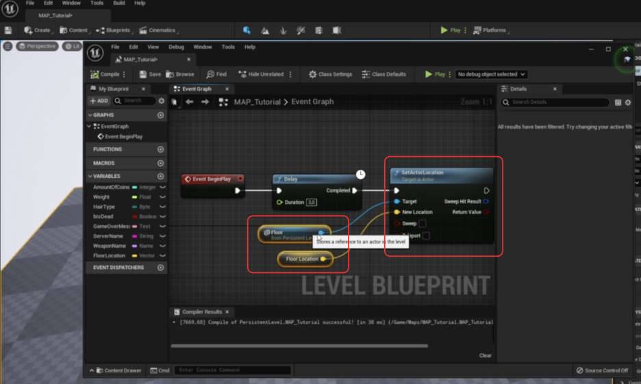 • 결과: 이제 게임이 시작되면, 이 FloorLocation 변수(100, 100, 100)로 바닥의 위치를 설정하게 됩니다. (원래 위치는 0, 0, 20 정도입니다.)