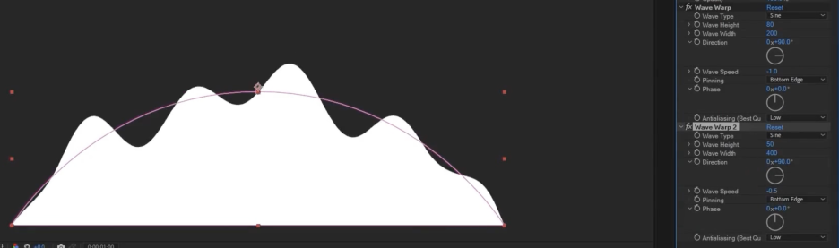 - Wave Warp는 1초에 한 사이클로 루핑되므로, 0프레임과 1초 프레임의 파형 모양이 같습니다.