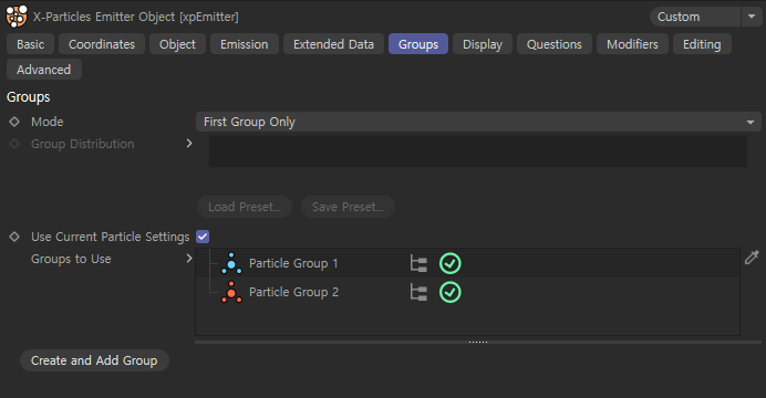 xpEmitter의 Group 기능은 X-Particles에서 입자를 더 세밀하게 제어할 수 있도록 도와줍니다. Group을 사용하면 입자들을 서로 다른 그룹으로 나누어 각 그룹마다 다른 속성이나 행동을 설정할 수 있습니다. 여기 몇 가지 주요 기능을 설명해드릴게요: